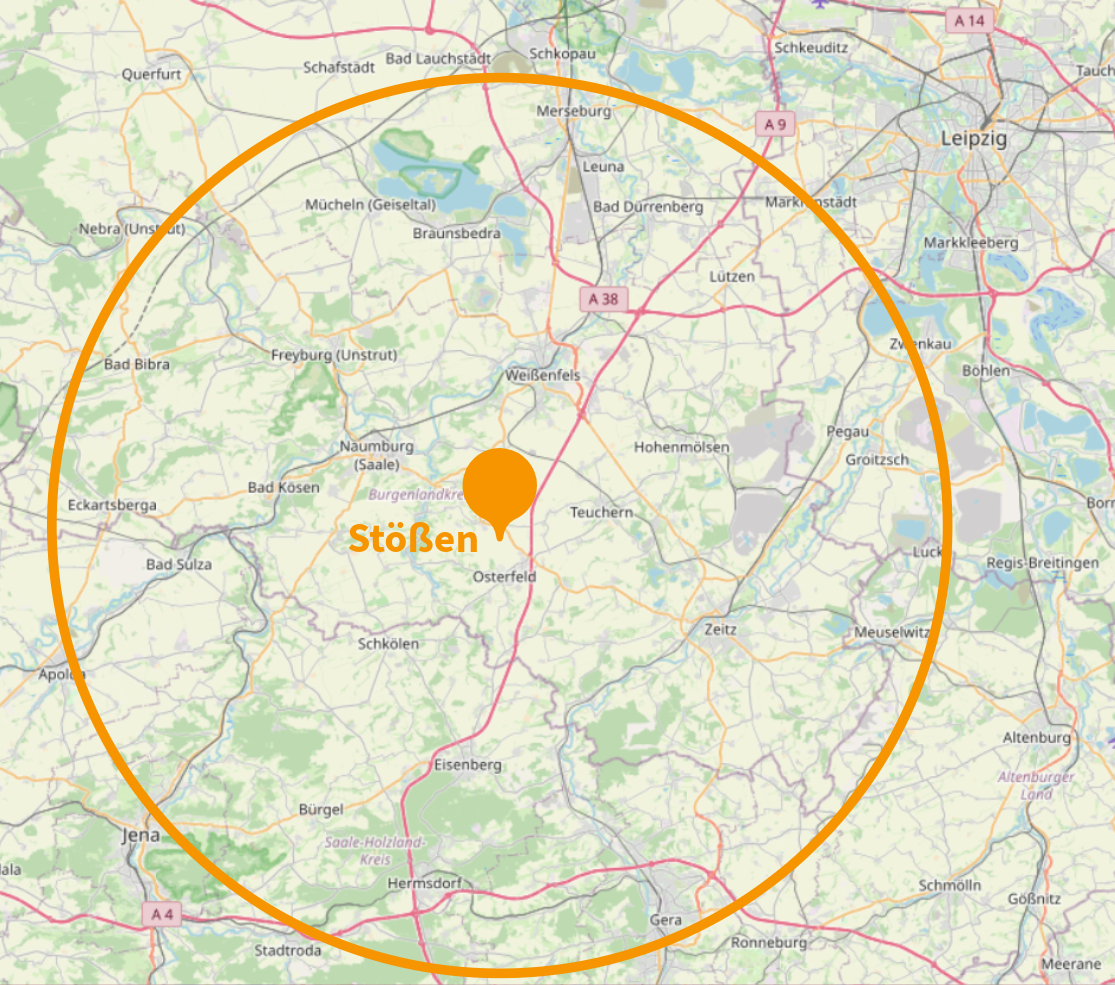 Die Tief- und Erdbau Plus GmbH  ist an zwei zentralen Stützpunkten verankert: Mit unserem Betriebsstützpunkt in Stößen, der verkehrsgünstig an der A9 unweit der Domstadt Naumburg liegt, sowie unserem Betriebsstützpunkt in Bitterfeld, sind wir für unsere Kunden im Dreiländereck Sachsen-Anhalt – Thüringen – Sachsen aktiv. Wir arbeiten sowohl im öffentlichen als auch privaten Bereich.